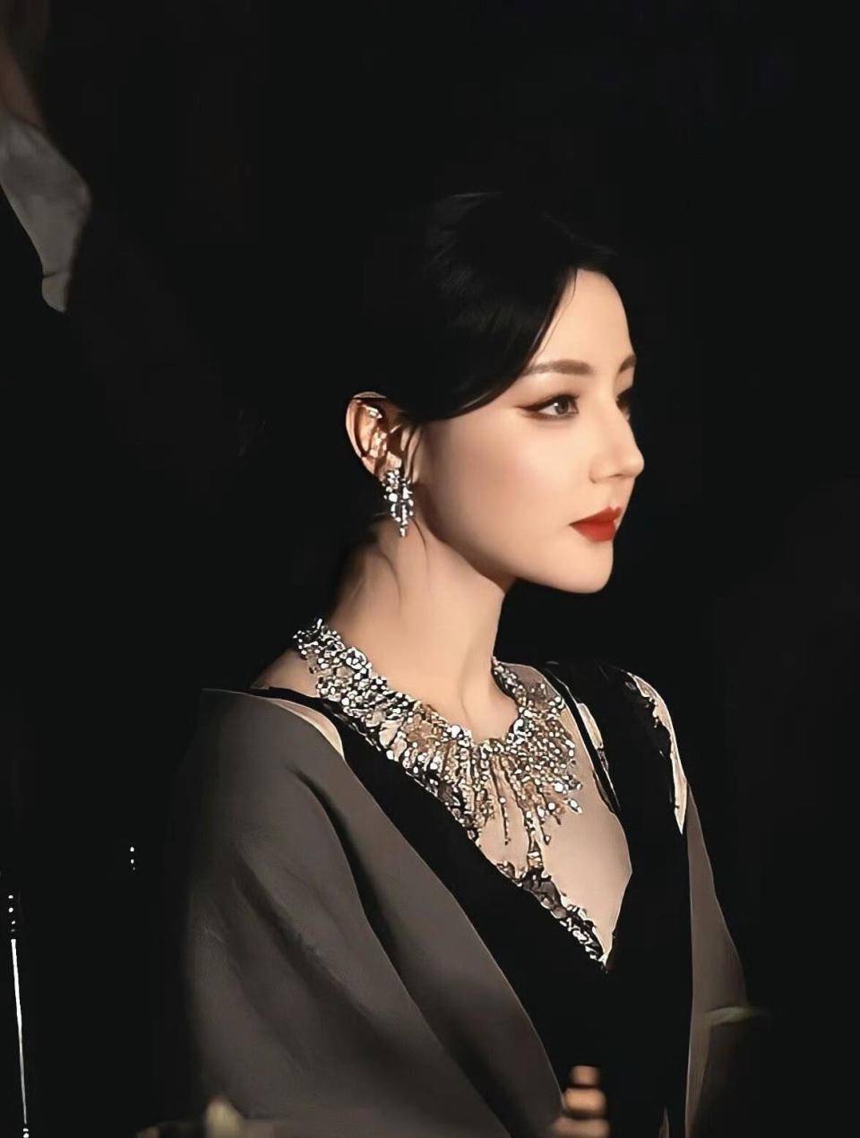 迪丽热巴身着黑色无肩带礼裙的生图在网络上疯传,无肩带设计勾勒出流畅肩颈线条,精致锁骨宛如天鹅展翅,深V领口与摇曳裙摆碰撞出强大气场,每一帧都自带高光。